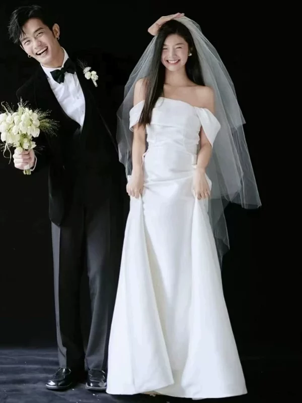 Strapless Slim Train Wedding Dress 2025 New Forest Style High Waist Light Wedding Dress High-end Bridal Gown