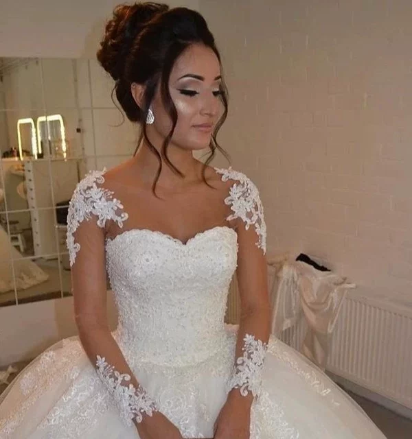 Long Sleeve Wedding Dress 2025 New Princess Ball Gown Vintage Lace Slim Nude A-Line Train
