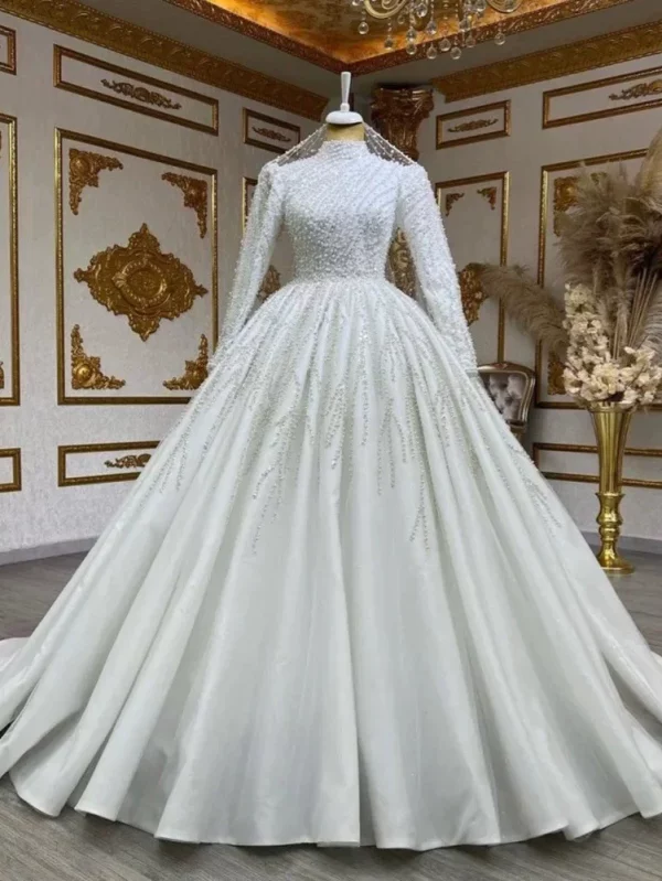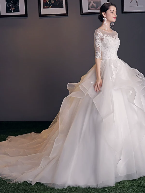 Long Sleeve Luxury Bridal Wedding Dress with Train Ball Gown Elegant High-End Light Luxury
