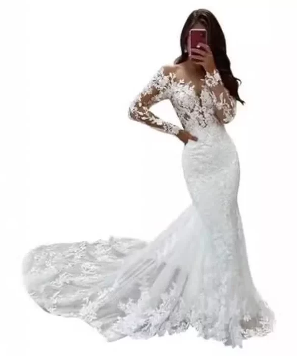 2025 New High Waist Lace Mermaid Long Sleeve Wedding Dress for Brides Summer Collection