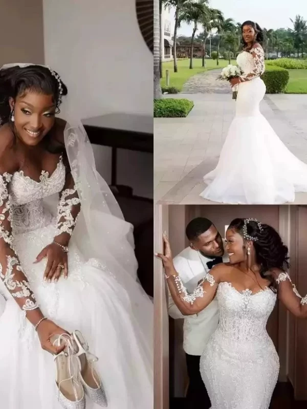 2025 New Off-Shoulder White Mermaid Slim Fit French Court Style Long Sleeve Mid-Waist Wedding Dress