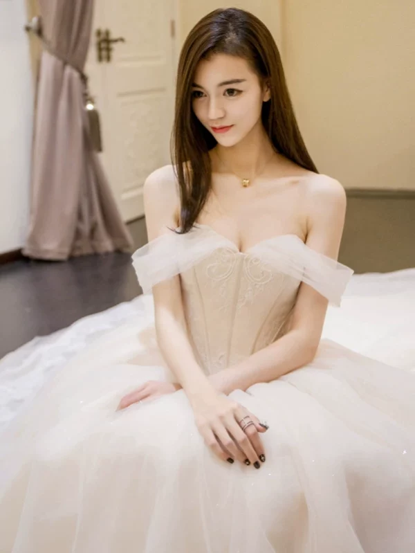 Light Main Wedding Dress 2025 New Bride Off-Shoulder Elegant Tulle Floor-Length Simple Forest Style Wedding Dress