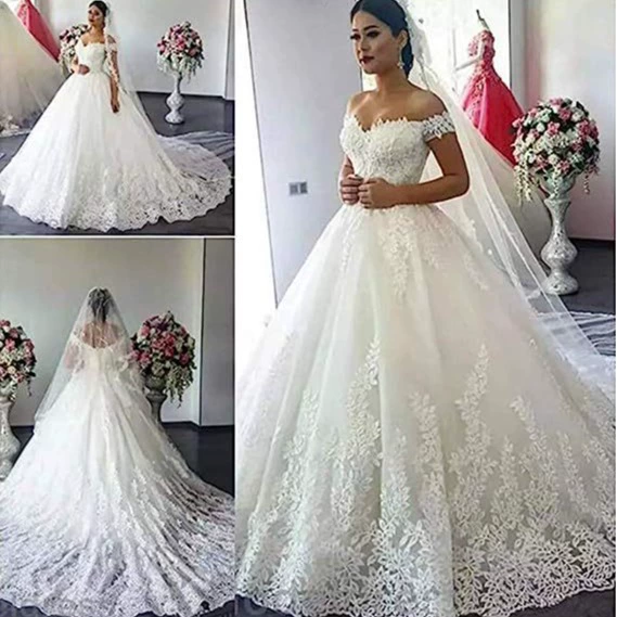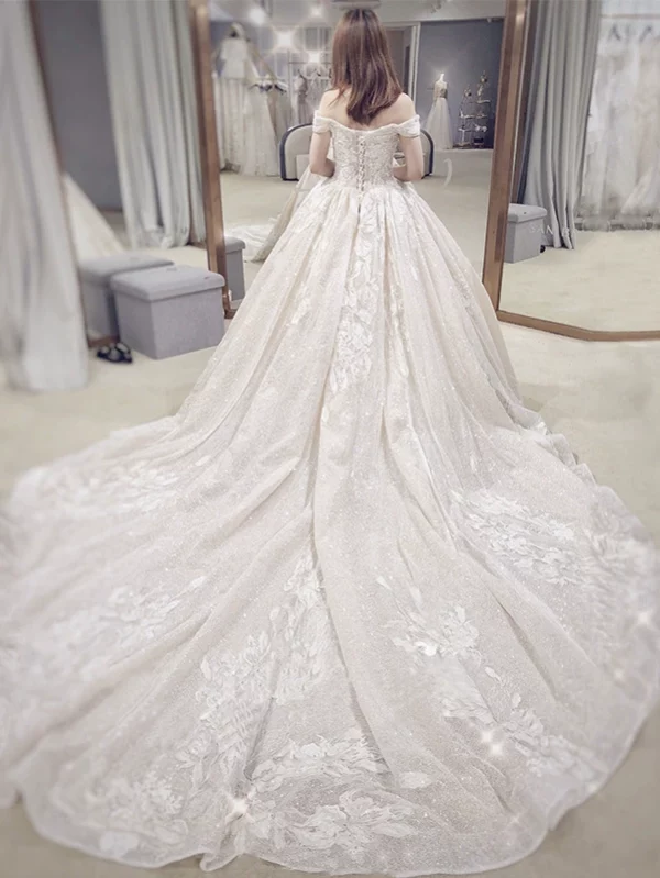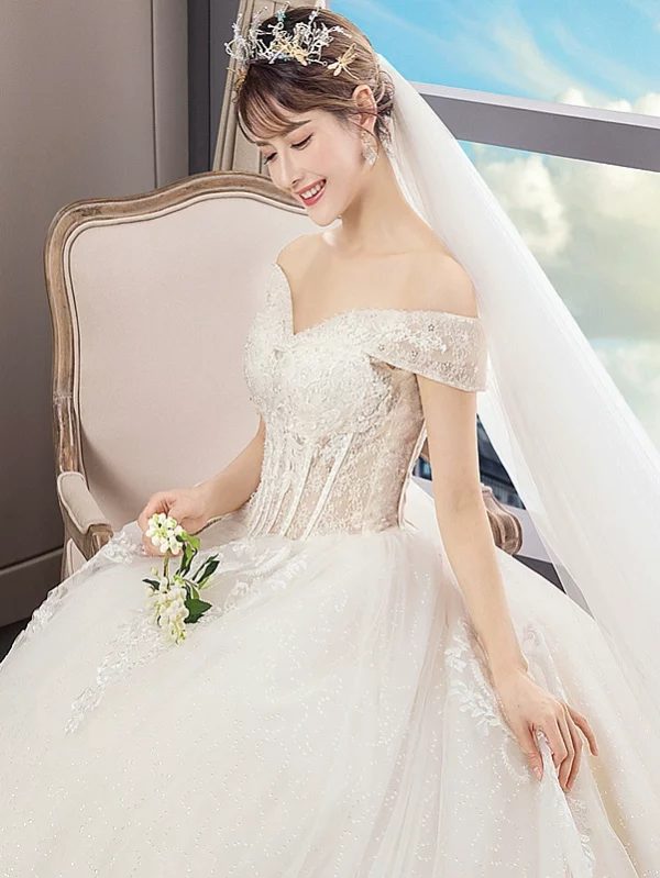Lace Wedding Dress 2025 New Off-Shoulder Plus Size Long Train Bridal Gown Summer
