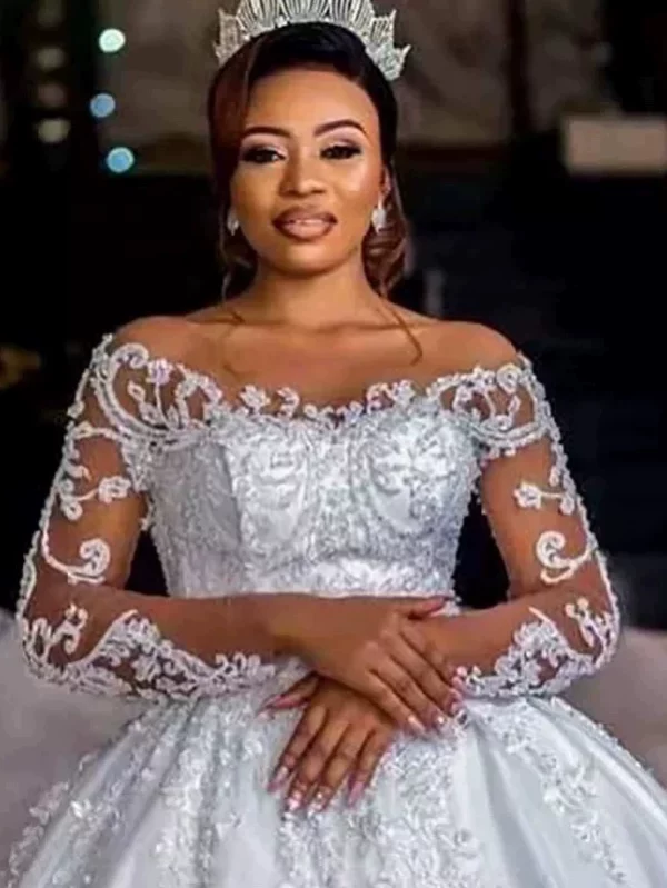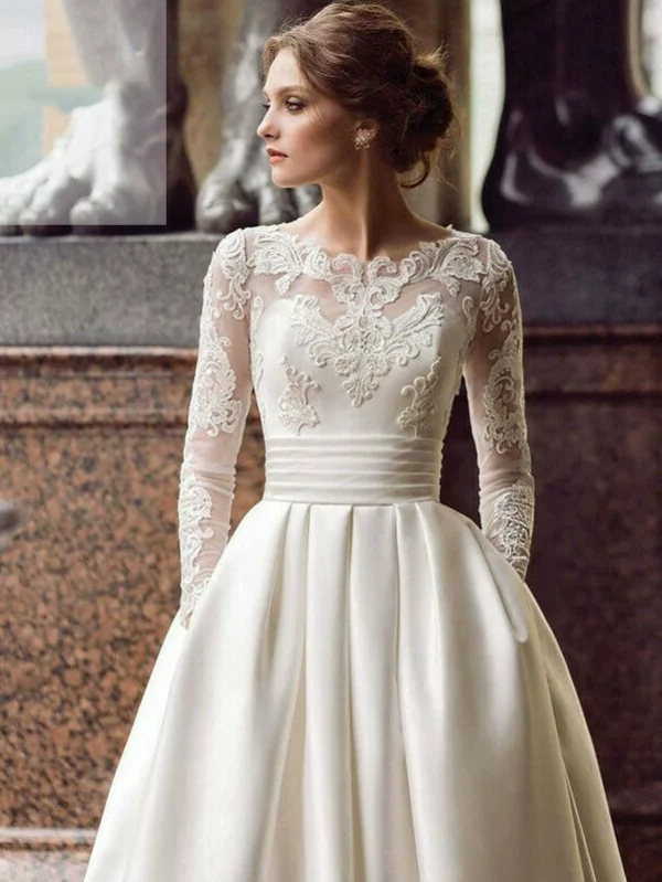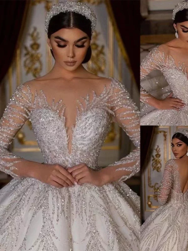 New Long Sleeve Luxury Bride Wedding Dress Long Train Main Dress Slim Fit Elegant Gown