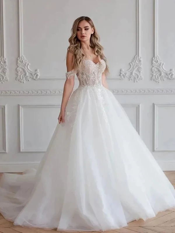 Main Wedding Dress Off-Shoulder 2025 New Elegant Bride Gown Majestic Court Style Long Train