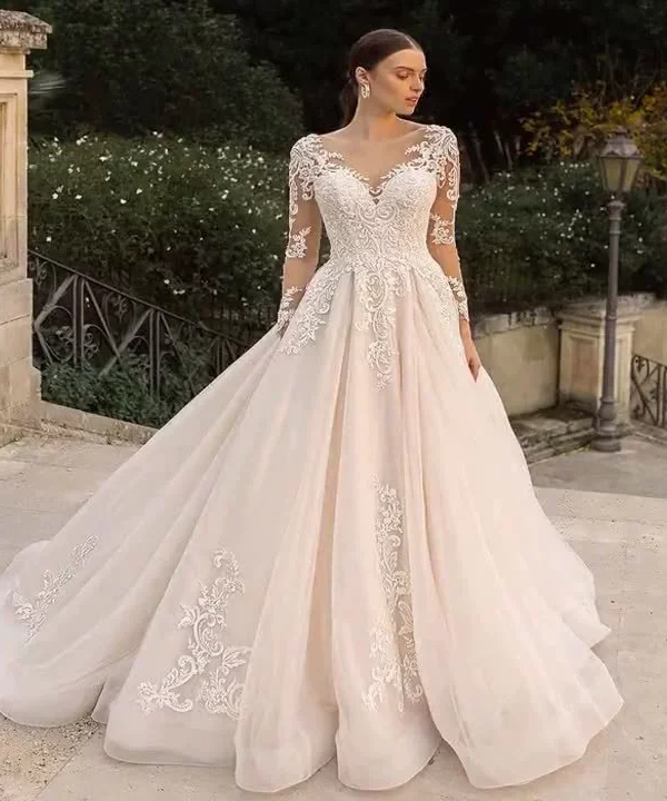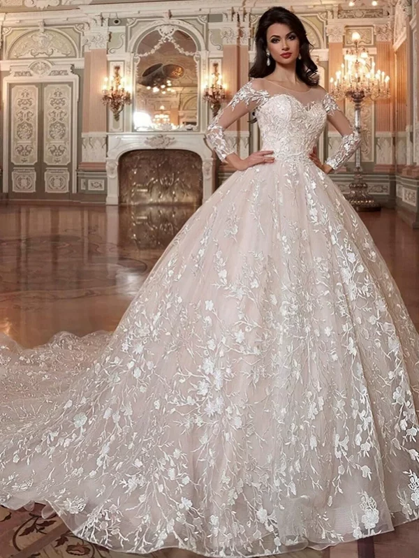 Spring and Summer New Long Sleeve Bridal Train Wedding Dress Fashion Niche High-End Gown