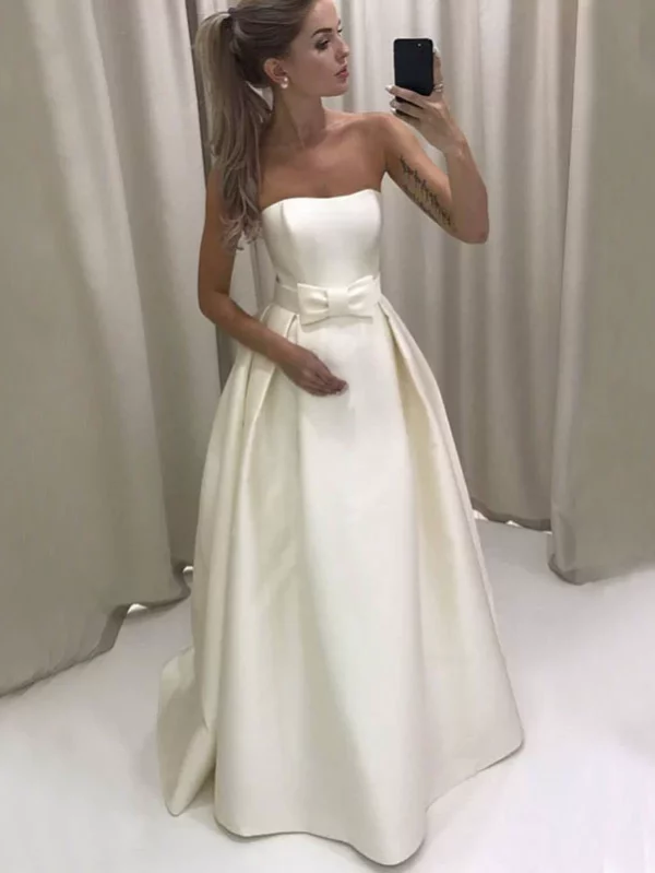 Simple Satin Strapless Bow Floor-Length Wedding Dress