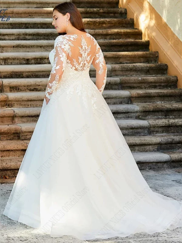 Simple Bride Long Wedding Dress Plus Size Slim Fit Small Train Light Tulle High-End Elegant Dress