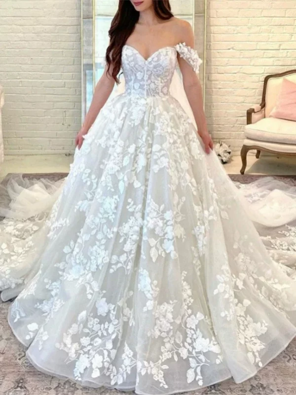 Delicate Off-Shoulder Wedding Dress Elegant Lace Appliqué 2025 New Bridal Gown