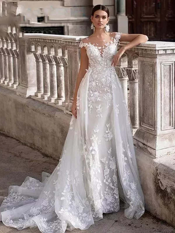 2025 New Summer Women's Lace Applique Vintage V-Neck Mermaid Wedding Dress Bridal Gown