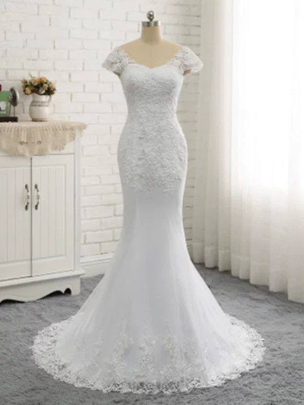 Backless Lace Mermaid Wedding Dress 2025 Summer New Cap Sleeve Vintage Small Slim Fit Bridal Dress