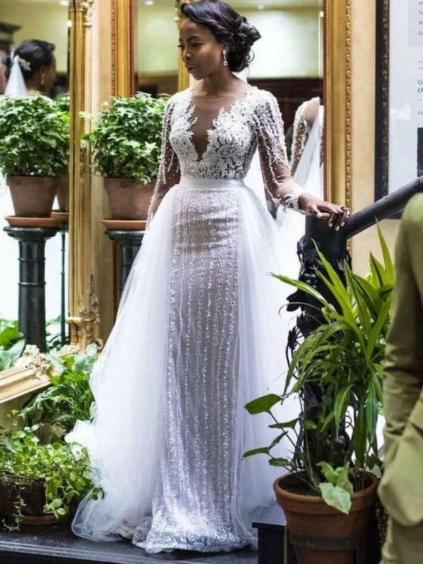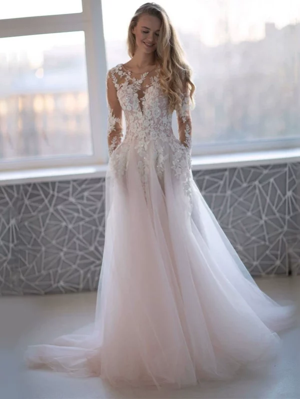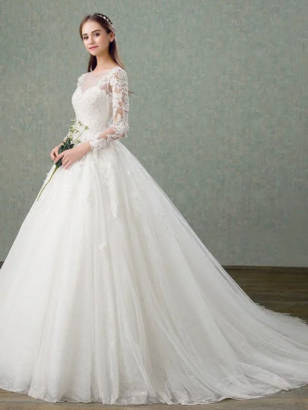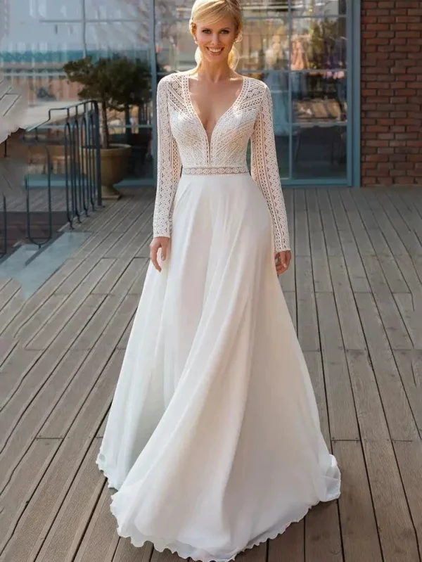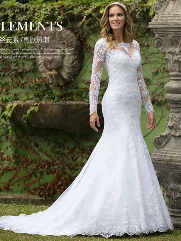 2025 New Wedding Dress Bridal Lace Long Sleeve Gown Summer
