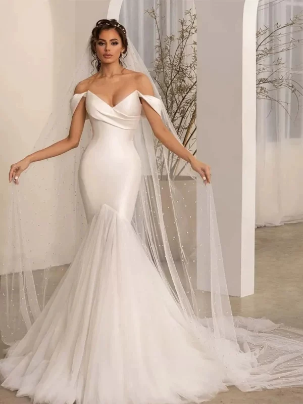 2025 Satin Light Wedding Dress Engagement French Bride Off-Shoulder Mermaid Main Dress Premium Quality Outing Gown