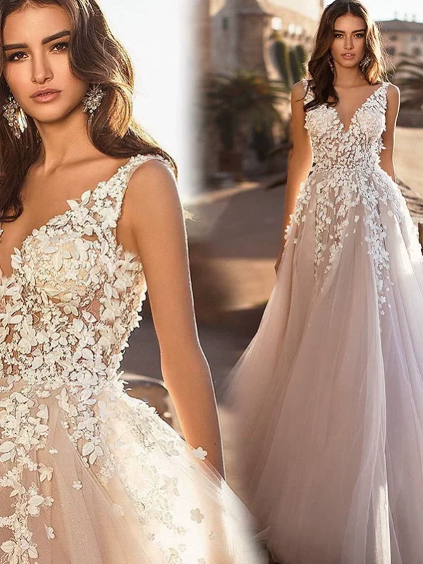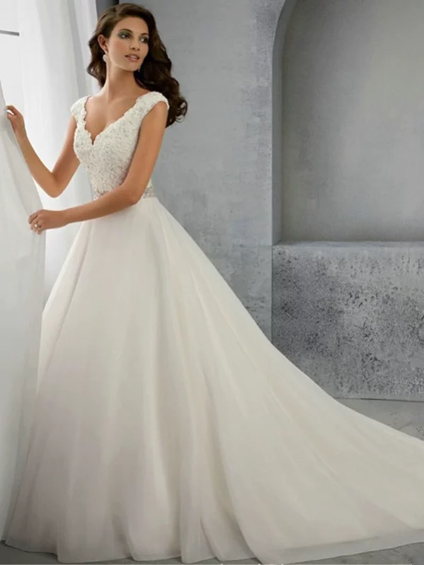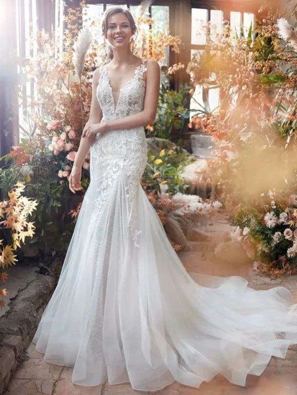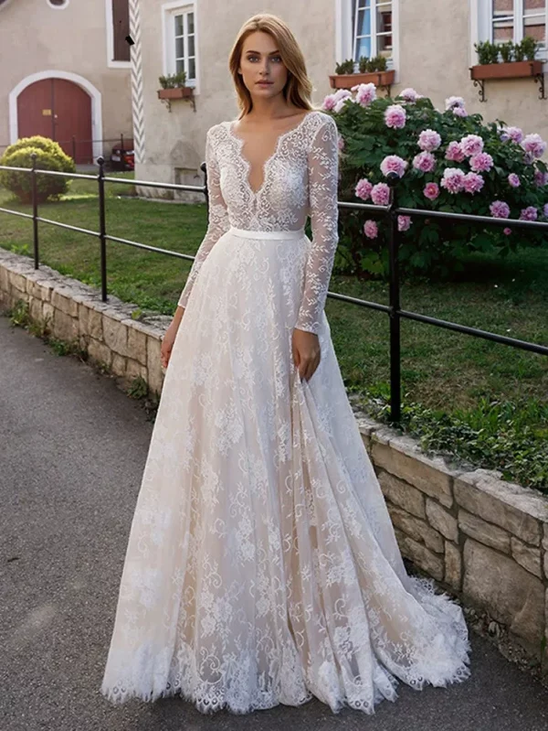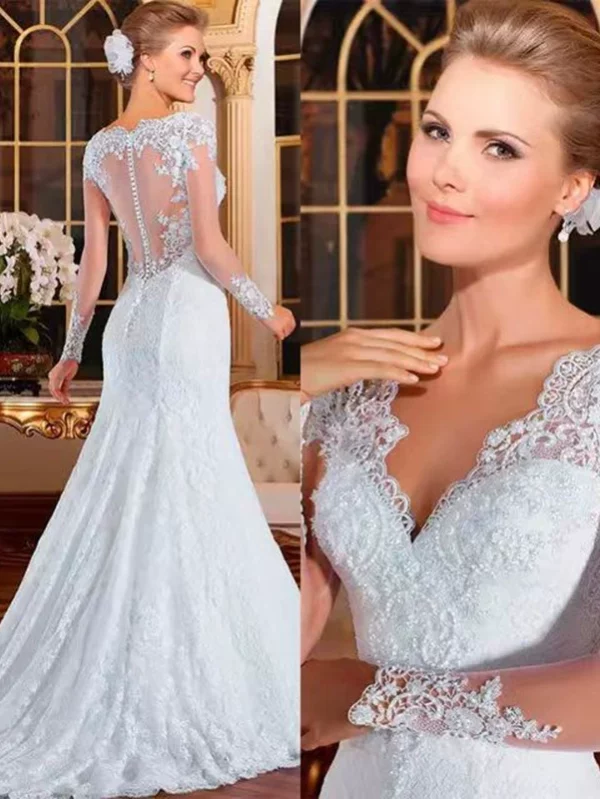 Elegant V-Neck Long Fit-and-Flare Mermaid Wedding Dress Spring