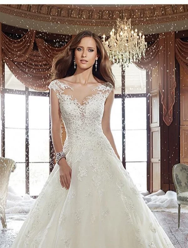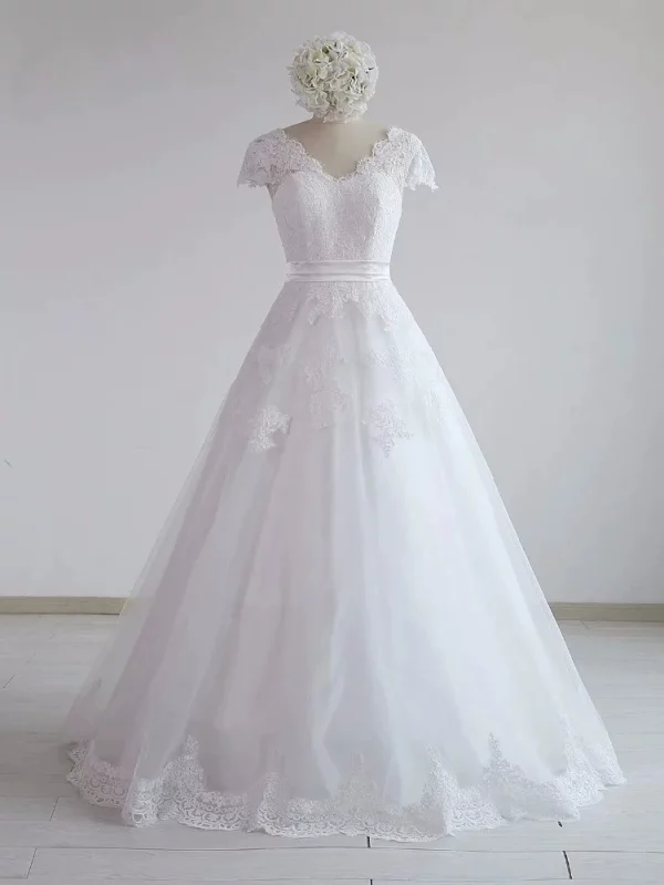 High Waist V-Neck Main Wedding Dress 2025 New Plus Size White Lace Long Train Wedding Gown