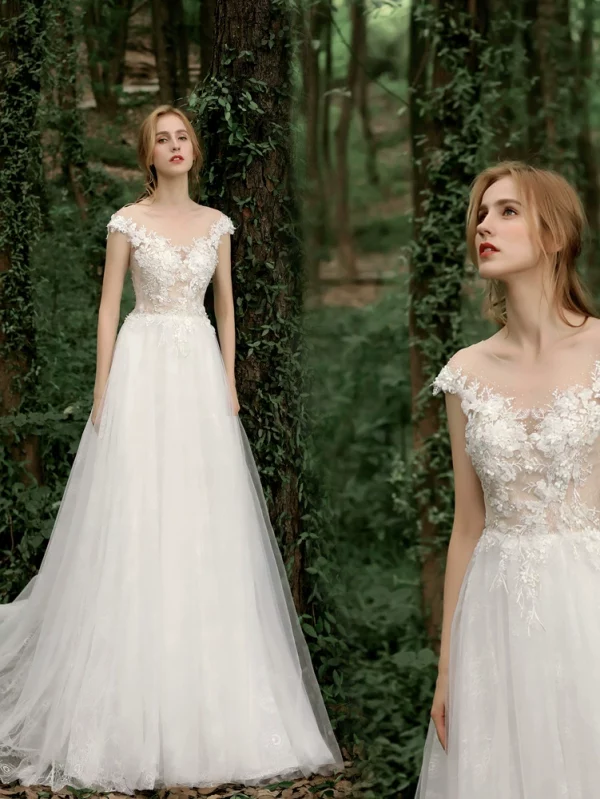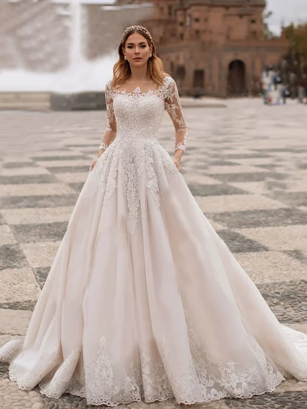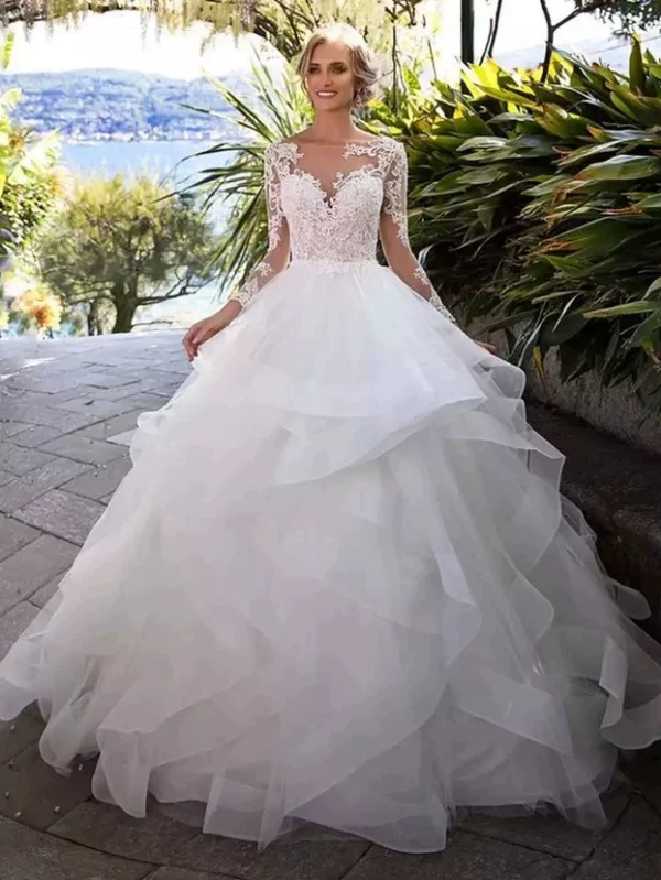 Exquisite Wedding Dress Forest Style 2025 New Long Sleeve Puffy Short Train Soft Tulle Slim Fit Bridal Beach Travel Summer