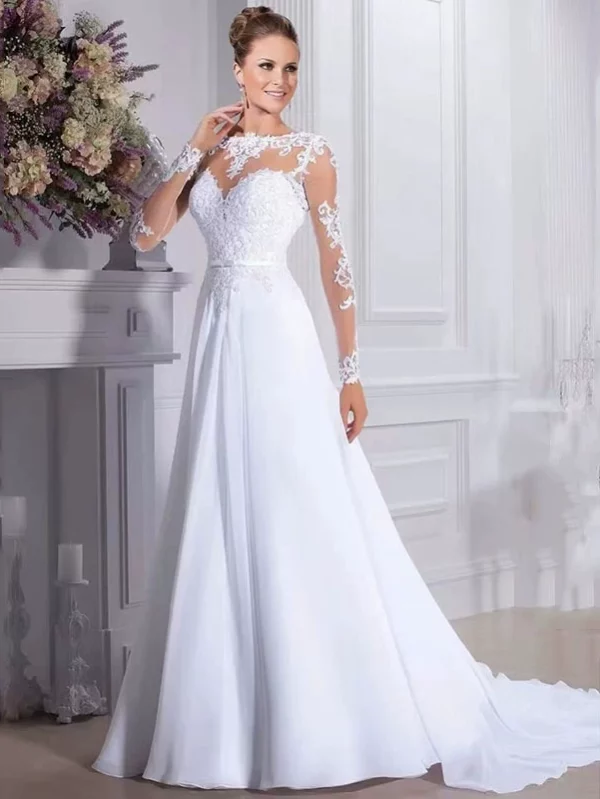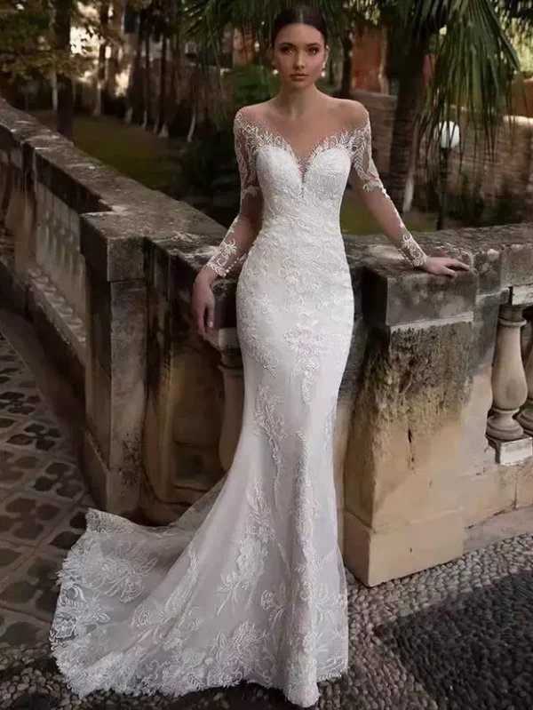 Exclusive Wedding Dress 2025 New Mermaid Retro Lace Long Sleeve Slim Fit Train