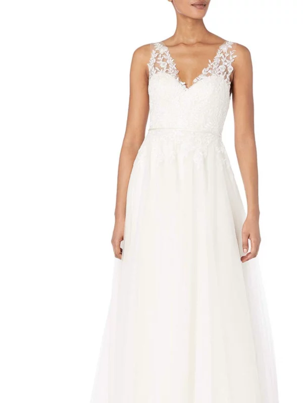 Deep V-neck Wedding Dress Fashionable Slimming Elegant Simple White Gown