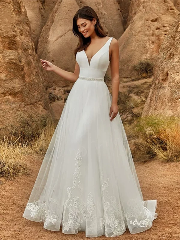 New Sexy V-Neck Slim Fit Long Wedding Dress 2025