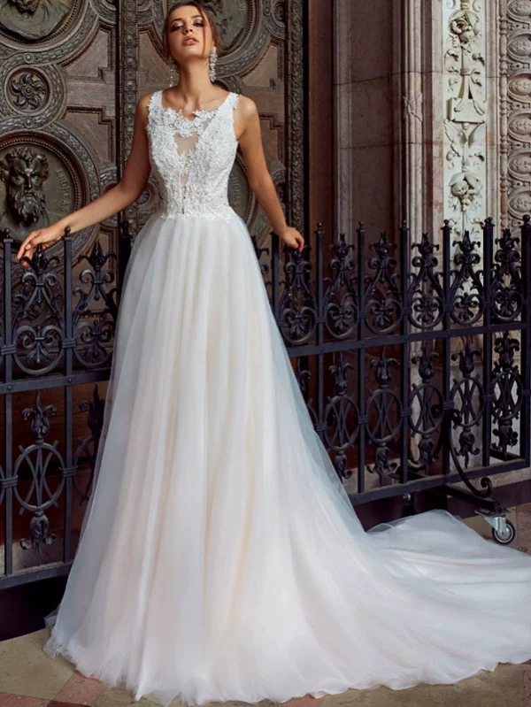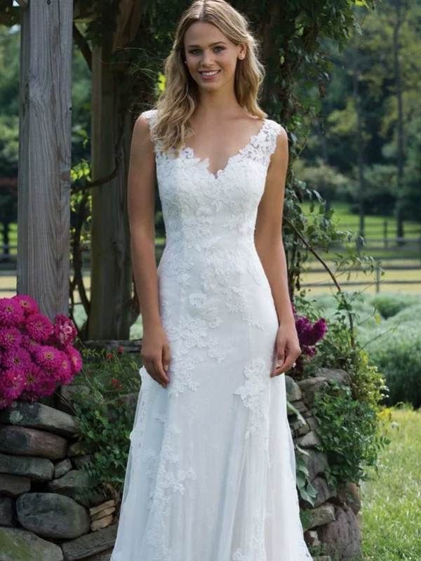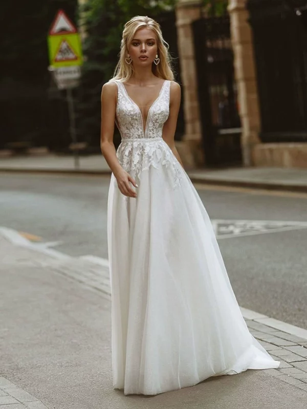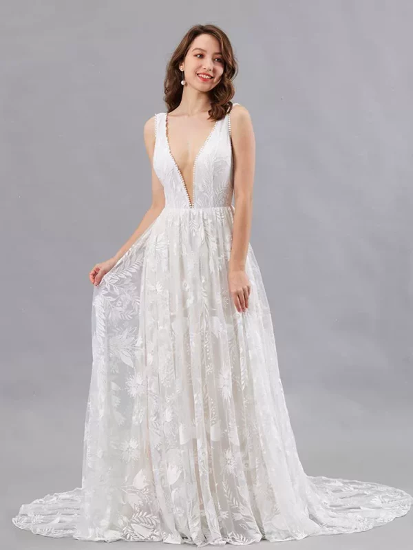 Simple V-Neck Sleeveless Lace Pattern White Wedding Dress 2025 Summer New Sexy Fashion Backless Bridal Gown