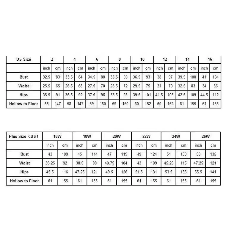| Plus Size (US) | 16W | 18W | 20W | 22W | 24W | 26W | ||||||
