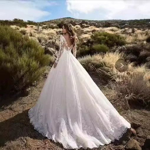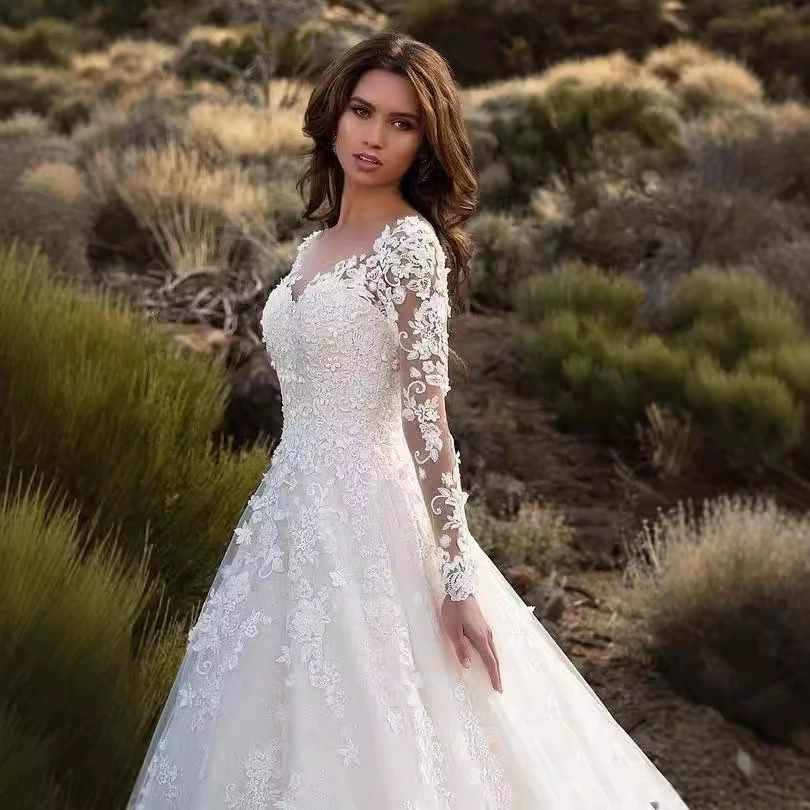 2025 Summer New Women’s Long Sleeve Off-Shoulder Bridal Wedding Dress Sexy Gown