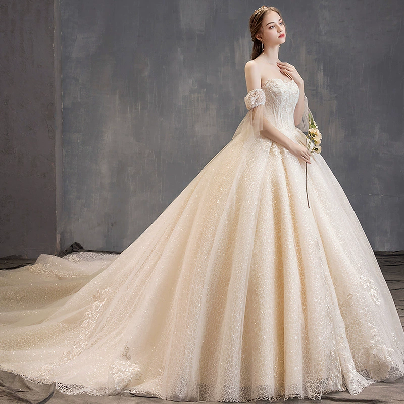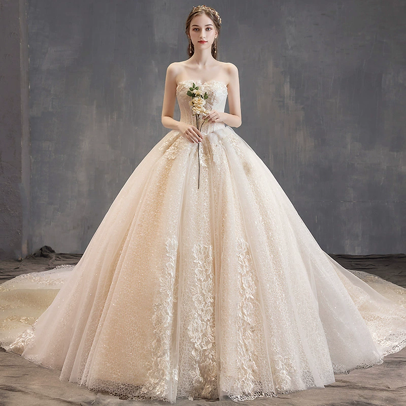 Color: Champagne (Floor-Length), Champagne (Long Train)