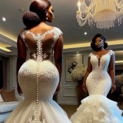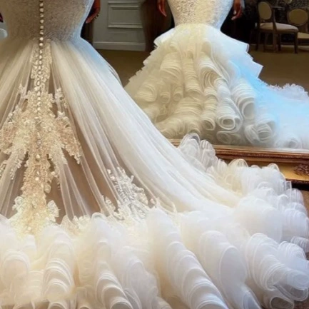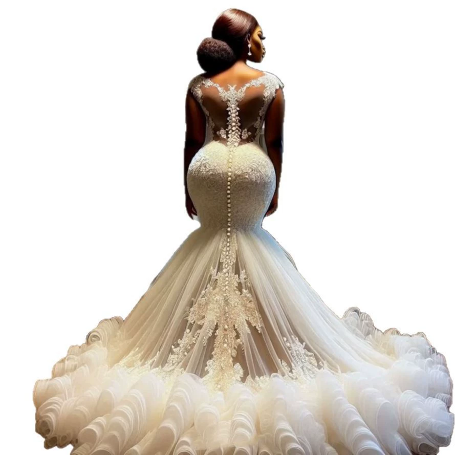 Long Train Mermaid Wedding Dress Chapel Bride Gown High-End Slimming Dress