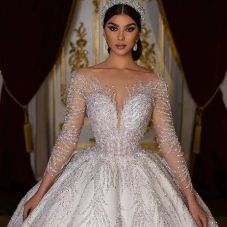 Luxury Bridal Wedding Dress Long Train V Neck Elegant High-End Open Back Sexy Gown