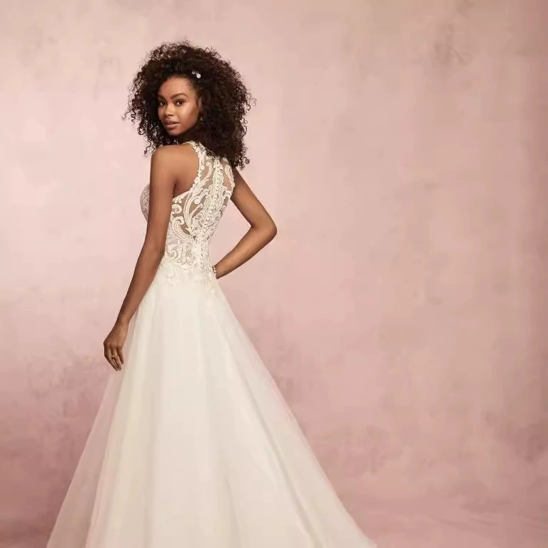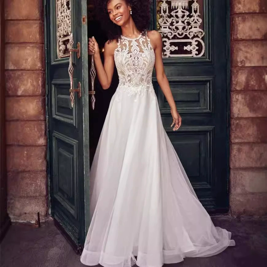 Sleeveless Lace Halter Wedding Dress Long Gown 2025 Summer New Fashion Simple Elegant Women’s Dress