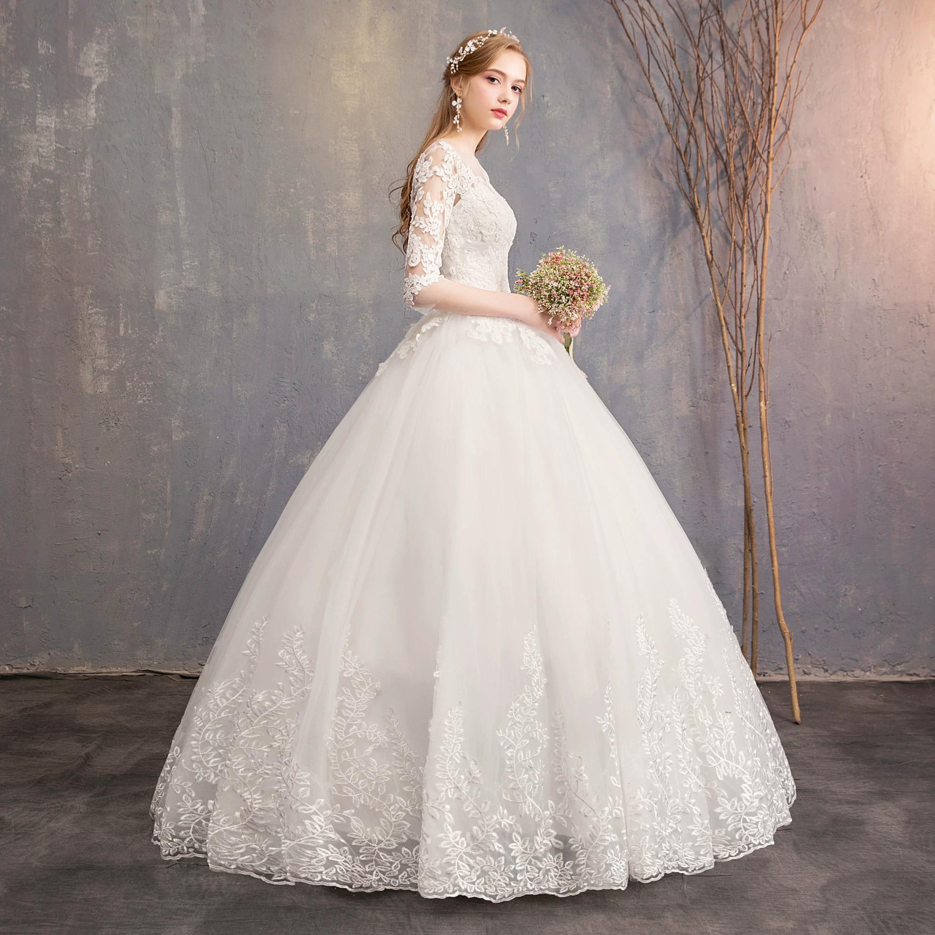 Wedding Dress 2025 New Floor-Length Strapless Simple Mid-Sleeve Lace Bridal Main Dress